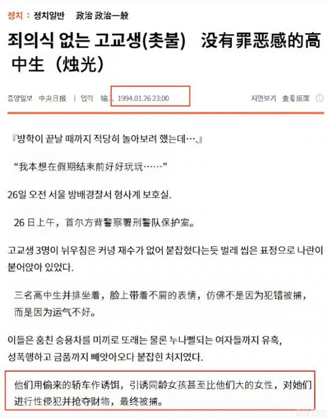 然而近期韓國(guó)D社的爆料,徹底撕碎了他的完美面具——趙震雄高二時(shí)(1993-1994年)便混跡社會(huì),與幫派成員偷車(chē),后升級(jí)為用偷來(lái)的車(chē)輛“狩獵”女性,曾在一個(gè)月內(nèi)四次引誘并帶走數(shù)位少女,在車(chē)上實(shí)施性侵與搶劫,部分受害者還是未成年人。這伙人的暴行持續(xù)至被警方抓獲才終止,更令人膽寒的是,他們被捕后毫無(wú)悔意,認(rèn)為只是“運(yùn)氣不好”,當(dāng)年負(fù)責(zé)案件的刑警都對(duì)其態(tài)度感到可怕,媒體曾以“沒(méi)有罪惡感的高中生”為題報(bào)道此事。