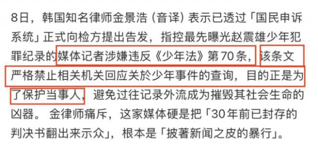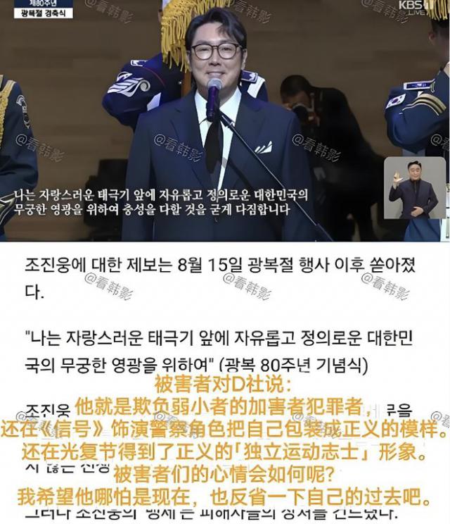 趙震雄能掩蓋前科出道并走紅,一是韓國(guó)《少年法》規(guī)定少年案件檔案封存,相關(guān)機(jī)關(guān)禁止回應(yīng)查詢(xún);二是他改名出道,用父親的名字掩蓋本名趙元俊的過(guò)去。塵封30年的往事被曝光,源于受害者無(wú)法忍受他以“正人君子”形象在熒幕演正義角色,尤其今年8月他以代表身份參加韓國(guó)光復(fù)節(jié)活動(dòng)并宣誓,進(jìn)一步鞏固正面形象,嚴(yán)重傷害受害者感情,這才促使受害者向D社爆料。