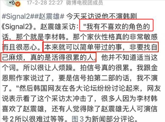 他對(duì)《信號(hào)》中“李材韓”角色的態(tài)度也暗藏玄機(jī)。該劇結(jié)尾留懸念本為第二部鋪墊,卻拖了10年未拍,并非制作方或編劇問(wèn)題,而是趙震雄拒絕出演,甚至用“惡心”形容這個(gè)角色,認(rèn)為李材韓“自找麻煩、活得太累”。而李材韓在劇中是剛正不阿、執(zhí)著追兇的正義警察,摯愛(ài)遭性侵遇害,自己因觸犯利益集團(tuán)被滅口,是觀(guān)眾喜愛(ài)的悲情角色。如今回看,趙震雄的厭惡或許并非角色壓抑,而是罪犯對(duì)刑警的本能排斥。