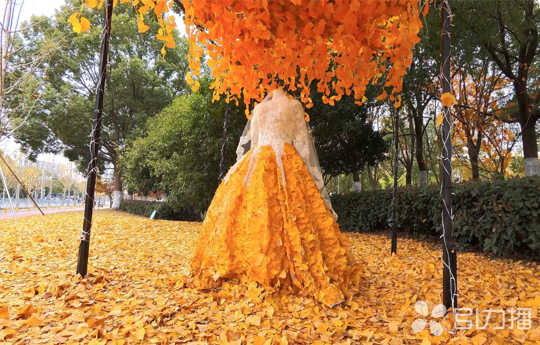 近日,蘇州工業(yè)園區(qū)翰林路旁,一件由環(huán)衛(wèi)工人用近千片銀杏葉手工拼貼而成的金黃色“銀杏婚紗”吸引了眾多路人拍照。感興趣的市民可前往打卡。