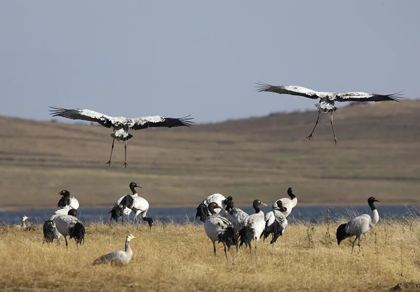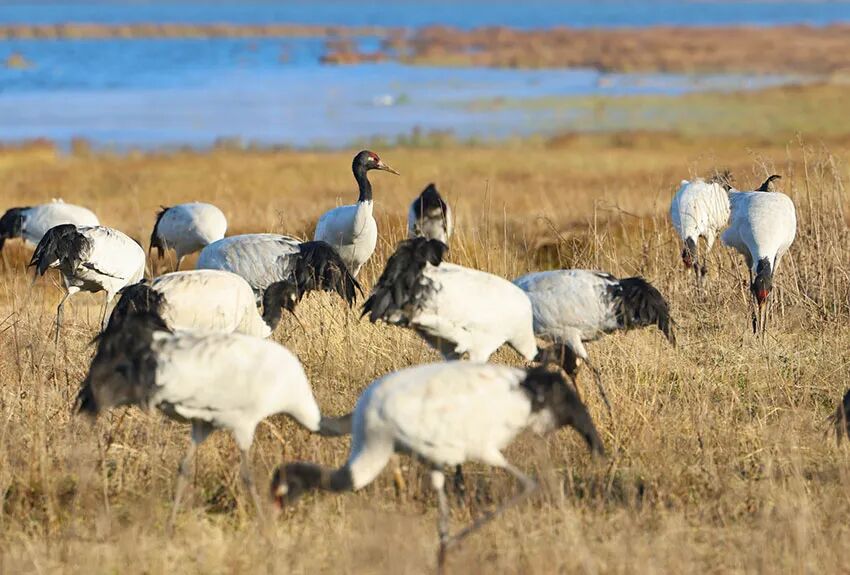 昭通大山包黑頸鶴國家級(jí)自然保護(hù)區(qū)內(nèi)的黑頸鶴。昭陽區(qū)融媒體中心供圖