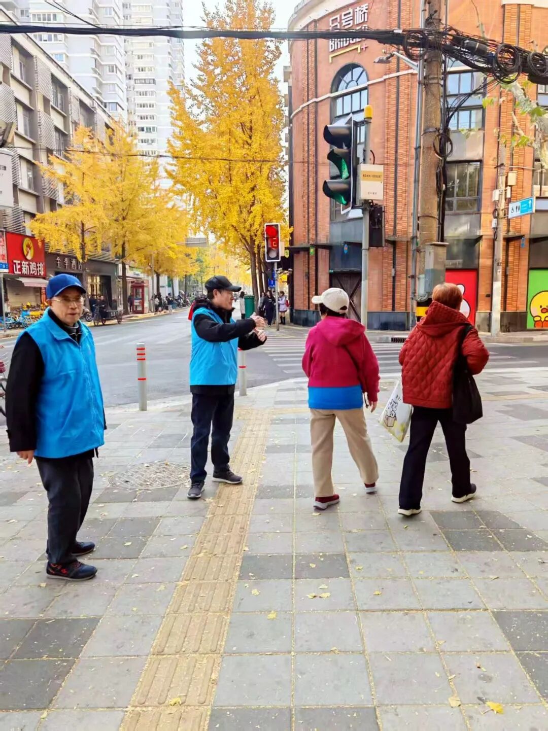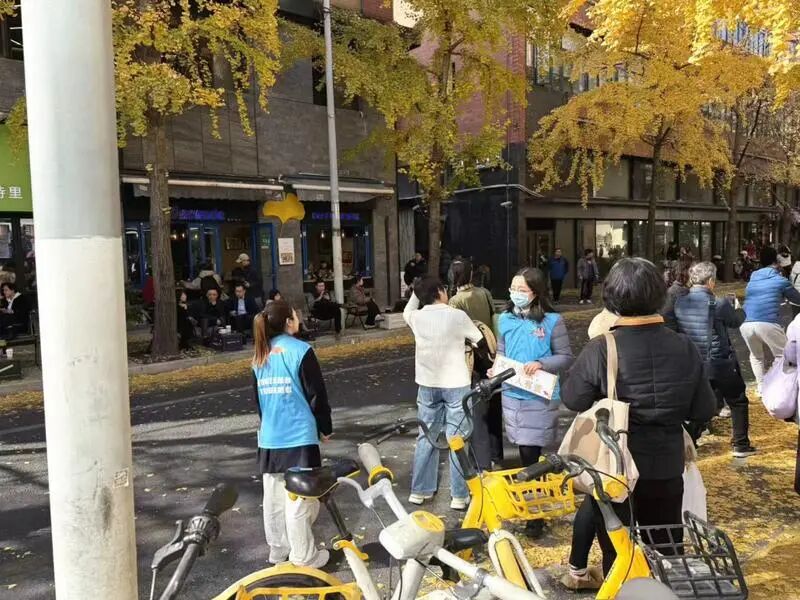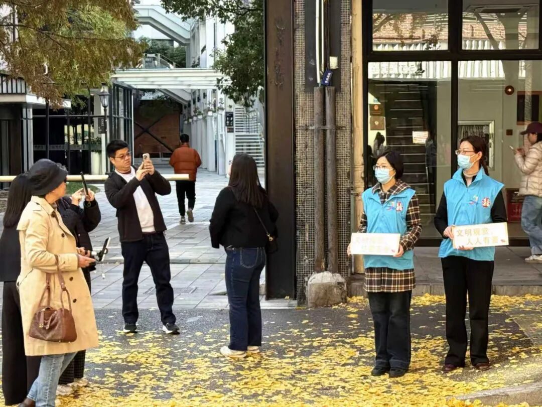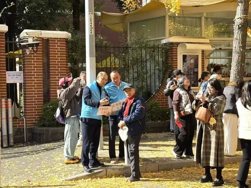 銀杏季期間,“杏?!敝驹刚邆兊纳碛半S處可見。面對絡繹不絕的游客,他們耐心引導人流、細致解答疑問;在街道與主干道上,認真維護秩序、反復提醒交通安全,用專業(yè)與負責保障觀景活動有序開展。每一次微笑問候、每一次精準指引,都傳遞著“和美五里”的真誠與友善,讓互助精神的暖意流淌在銀杏樹下。