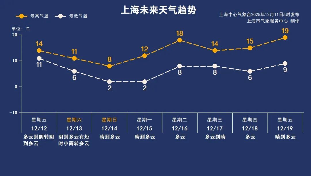 12月12日(周五):多云到陰再轉(zhuǎn)陰到多云,氣溫11到14℃