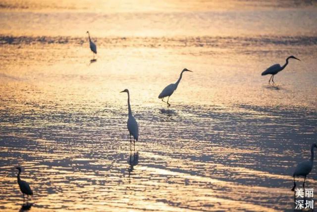 如果來到深圳灣公園,一定要等到日落時分。夕陽灑在海面上金光閃閃,波光粼粼中候鳥歸巢,這可是深圳最浪漫的畫面之一!