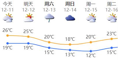 深圳氣象臺預報,今日我市多云間晴,早晚有輕霧,氣溫在19℃至26℃之間,東北風2-3級,相對濕度45%-80%。