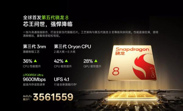一加 Ace 6T 在性能上也毫不含糊。它全球首發(fā)第五代驍龍 8 移動平臺,覆蓋了 7 大領(lǐng)域的 31 項專項優(yōu)化,沿用了第三代 3nm 制程和 OryonCPU 架構(gòu),CPU 性能相比前代提升了 36%,GPU 性能提升了 11%,安兔兔跑分突破了 356 萬。