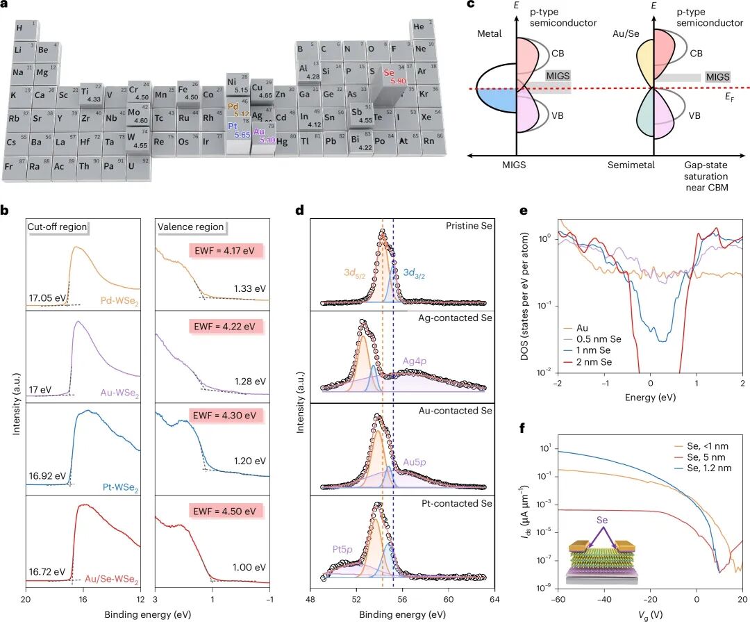 圖1. 能帶雜化硒接觸與高有效功函數(shù)特性