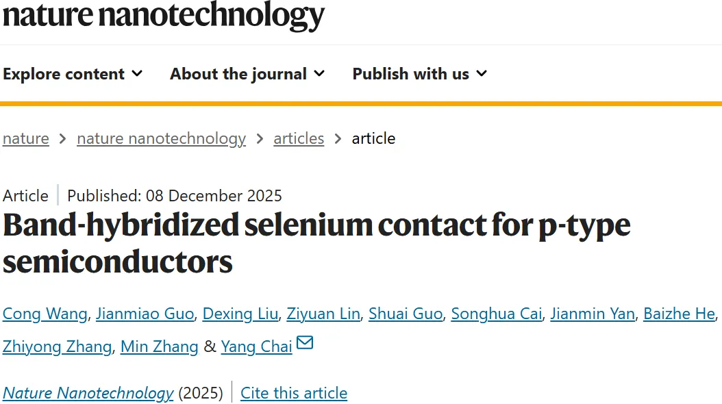 【復(fù)材前沿】香港理工大學(xué)新突破:硒界面能帶雜化策略攻克p型半導(dǎo)體低阻接觸難題,登Nature Nanotechnology