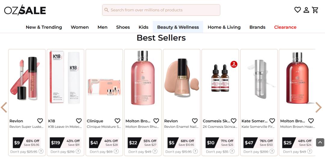 聚美麗在Ozsale官網查詢發(fā)現,目前其在售美妝品牌包括YSL、祖瑪瓏、嬌韻詩、資生堂、倩碧等,商品頁面清晰標注折扣力度,大多在40%-80%之間。