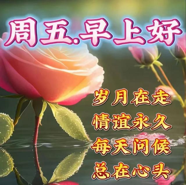 忙碌讓時(shí)光悄然溜走,簡(jiǎn)單讓壓力煩惱消散,快樂(lè)讓幸福甜蜜相伴,這份漂亮的祝福,想對(duì)你說(shuō)聲星期五早安。
