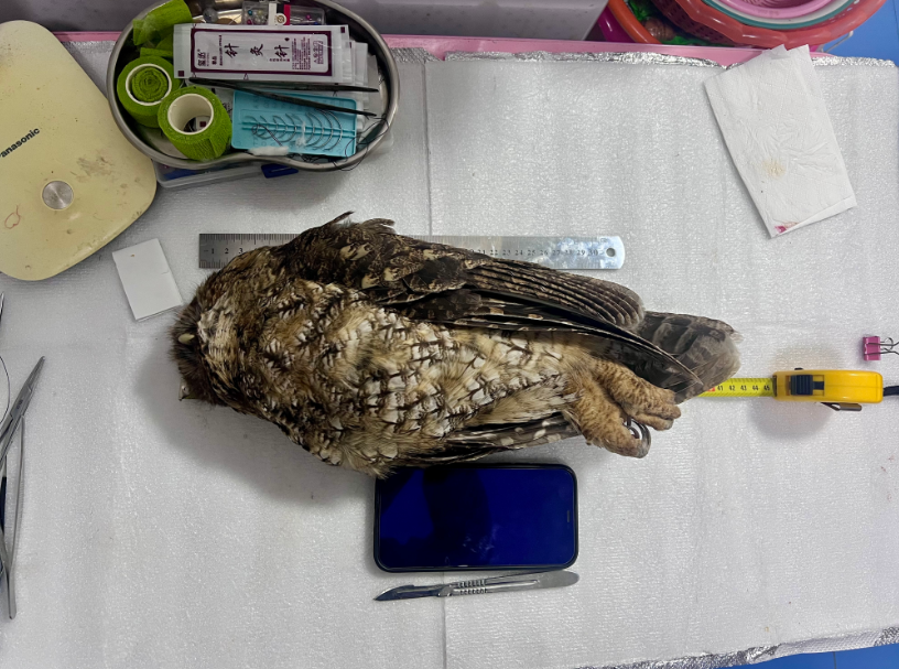 檢查顯示,這只灰林鸮體重516克、體長(zhǎng)42厘米,是脂肪儲(chǔ)備充足、肌肉發(fā)達(dá)的健康成年雌性。尹軍表示,這是上海第一筆灰林鸮記錄,“很悲哀,也很無奈”。