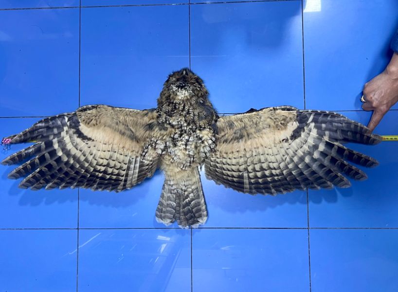 灰林鸮正常狀態(tài)翼展100厘米。受訪者供圖