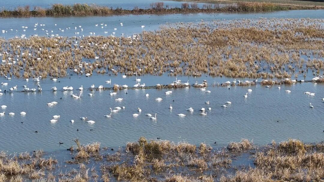 合肥十八聯(lián)圩濕地成千只小天鵝越冬地 生態(tài)改善造就新“天鵝湖”