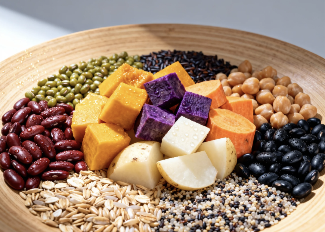 好碳水多來(lái)自加工程度低、營(yíng)養(yǎng)保留完整的天然植物性食物,具有低升糖指數(shù)(GI)、高膳食纖維、高營(yíng)養(yǎng)密度的特點(diǎn)。它消化吸收慢,能持續(xù)穩(wěn)定供能,避免血糖大幅波動(dòng),還可降低糖尿病、心血管疾病的發(fā)病風(fēng)險(xiǎn)。這類食物包括全谷物、雜豆、薯類等。