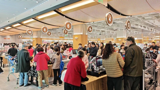 和高品質(zhì)商品相呼應(yīng)的,是王府井科華店打破傳統(tǒng)的空間設(shè)計(jì)和溫暖服務(wù)。門店徹底改變了傳統(tǒng)賣場擁擠雜亂的狀況,以寬敞明亮的通道、精心規(guī)劃的熟食烘焙專區(qū)和流暢的收銀動(dòng)線,營造出安全、便捷且愉悅的購物環(huán)境。收銀區(qū)特別打造了星空頂設(shè)計(jì),配合精心調(diào)校的燈光系統(tǒng),凸顯商品質(zhì)感,營造時(shí)尚舒適的購物氛圍。