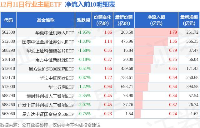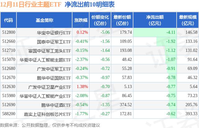 12月11日行業(yè)主題ETF資金凈流出達(dá)10.49億元