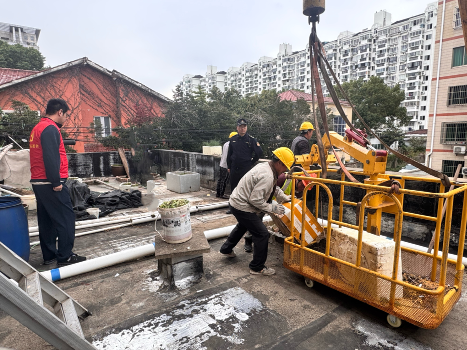 物業(yè)服務(wù)從來不只局限于修修補補,而是要把溫情融入治理的每個細節(jié)。針對去年1-3號樓平臺亂種菜問題回潮的情況,黨支部牽頭居委會、物業(yè)、業(yè)委會“三駕馬車”,聯(lián)合綜合行政執(zhí)法隊迅速啟動二次整治。紅色物業(yè)專員先行上門,面對老年居民的抵觸情緒,用通俗語言釋法明理,靠耐心溝通拉近距離。隨后,綜合行政執(zhí)法隊調(diào)用大型吊機,集中清運平臺上違規(guī)放置的浴缸、泡沫箱等雜物,徹底整治亂堆亂放問題,鞏固治理成效。