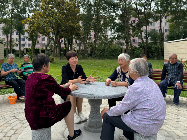 針對老舊小區(qū)“治理力量分散、居民訴求繁雜”的痛點,藍天五村居民區(qū)黨支部盤活“板凳議事會”這一載體,構(gòu)建起“黨支部牽頭,居委會、物業(yè)、業(yè)委會、志愿者協(xié)同參與”的“1+N”治理機制。紅色物業(yè)專員化身“家門口的議事組織者”,把“議事桌”搬到居民樓前,讓群眾訴求當(dāng)場商議、疑難問題快速解決,大幅縮短了問題處置周期。