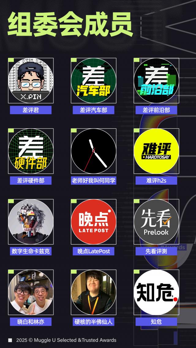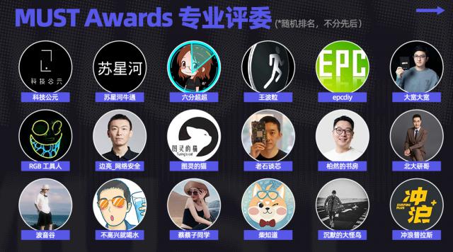 我們還請了近100位科技內(nèi)容創(chuàng)作者當(dāng)專業(yè)評委,每個領(lǐng)域約20位,保證結(jié)果既有用戶的真實感受,又有內(nèi)行的專業(yè)判斷。很多頭像大家應(yīng)該都眼熟。