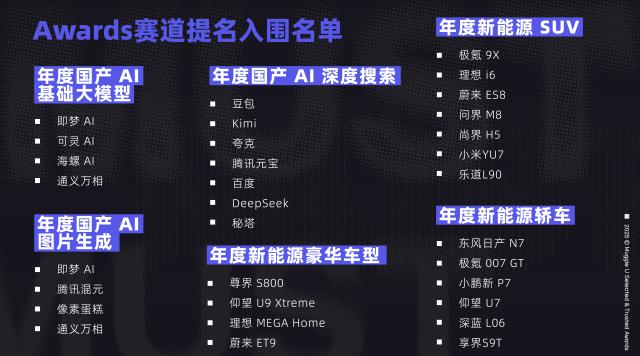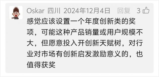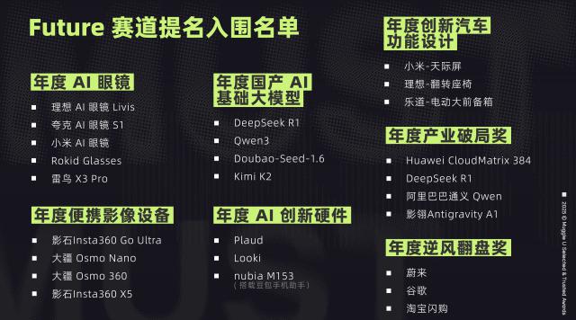 “年度驚喜產(chǎn)品”面向全行業(yè),不限類型。我們之前頒給過大疆天空之城、麒麟9000s和鴻蒙原生系統(tǒng),希望大家記住那些讓行業(yè)振奮的時刻。