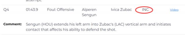 這次唯一的漏判發(fā)生在比賽僅剩1分43秒時(shí)。當(dāng)時(shí),火箭隊(duì)的申京在進(jìn)攻過程中,將左臂伸到了處于防守狀態(tài)、手臂垂直舉起的快船隊(duì)球員祖巴茨的手臂上,主動(dòng)制造了身體接觸,這一行為對(duì)祖巴茨防守投籃的動(dòng)作產(chǎn)生了影響。申京進(jìn)球后,祖巴茨曾用手勢(shì)向裁判示意申京犯規(guī),但裁判并未做出回應(yīng)。