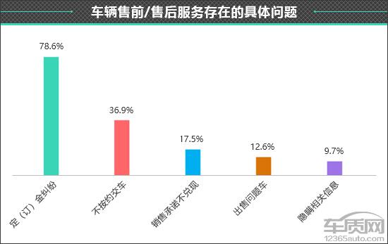 問(wèn)題集中在銷(xiāo)售環(huán)節(jié),定金糾紛占比最高,部分車(chē)主反映存在不按約交車(chē)情況。