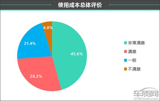 使用成本綜合評(píng)價(jià):超七成車(chē)主非常滿意或滿意,21.4%認(rèn)為一般,僅4.8%不滿意。