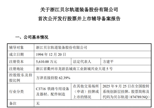 貝爾軌道啟動北交所IPO進(jìn)程:年營收達(dá)3億元 方建平家族控股超九成