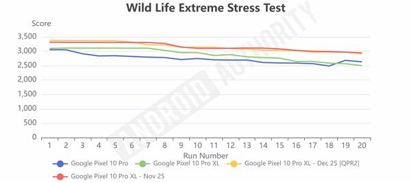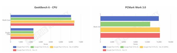 科技媒體Androidauthority針對(duì)Pixel 10 Pro XL機(jī)型展開(kāi)了專(zhuān)項(xiàng)測(cè)試。在CPU性能測(cè)試中,Geekbench 6單核成績(jī)僅提升2%,多核成績(jī)提升5%,整體變化相對(duì)有限。