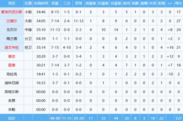 森林狼隊(duì)本場(chǎng)數(shù)據(jù)如下: