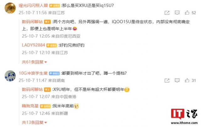 該博主在今年10月與網(wǎng)友互動(dòng)時(shí)也曾提到,iQOO 15U(即iQOO 15 Ultra)當(dāng)時(shí)處于待定狀態(tài),內(nèi)部尚未完全確定是否推出,即便最終確定推出,發(fā)布時(shí)間也會(huì)在明年上半年。