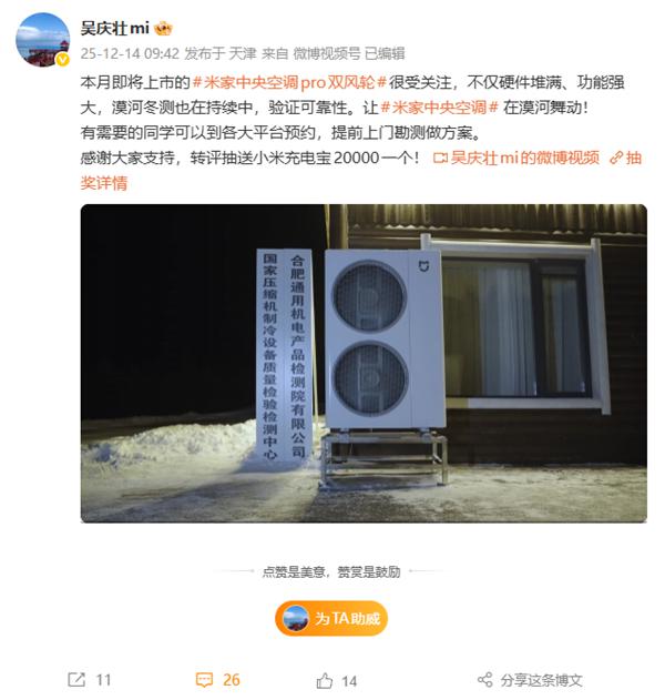 小米自研首作!米家中央空調(diào)Pro雙風輪漠河嚴苛冬測 硬核配置全拉滿