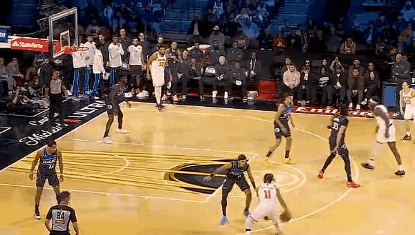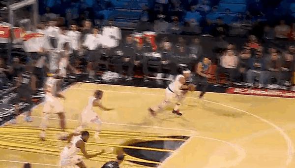 值得一提的名場面是,布倫森連續(xù)運球虛晃,導(dǎo)致布萊克倒地,隨后他一個后搖后撤步命中三分。