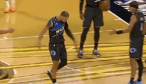 前三節(jié)扛著魔術(shù)前進(jìn)的薩格斯,末節(jié)突然大腿不適,提前離場時魔術(shù)已落后10分,他上半場砍25分,下半場僅得1分。