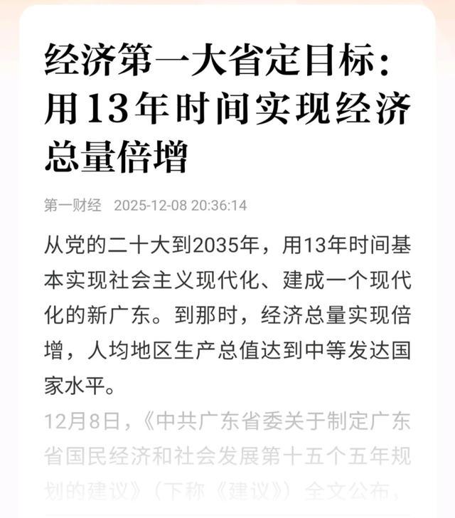 經(jīng)濟總量翻番意味著,到2035年廣東GDP總量需突破25萬億元。